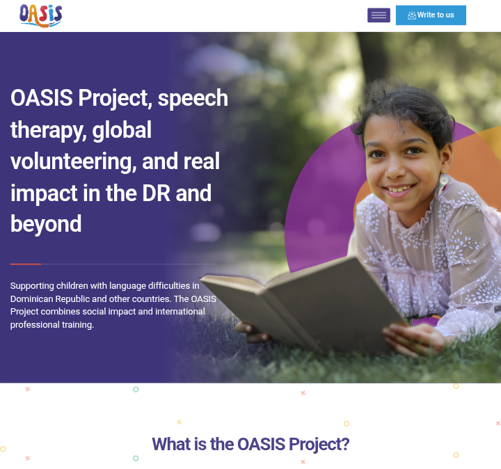 Oasis Project exigía una misión visible. Diseñamos una página donde los programas y valores se ven claramente, logrando mayor interés colaborativo.